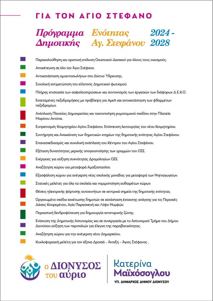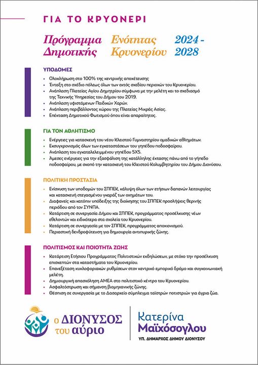 Ο συνδυασμός, ο Διόνυσος του Αύριο, με την υποψήφια Δήμαρχο την Κατερίνα Μαιχόσογλου, ανακοίνωσε το πρόγραμμα, για τις 7 δημοτικές κοινότητες του Δήμου Διονύσου.