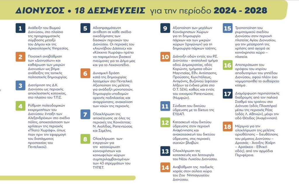Δύναμη Ευθύνης για τον Διόνυσο: Οι δεσμεύσεις για την περίοδο 2024-2028